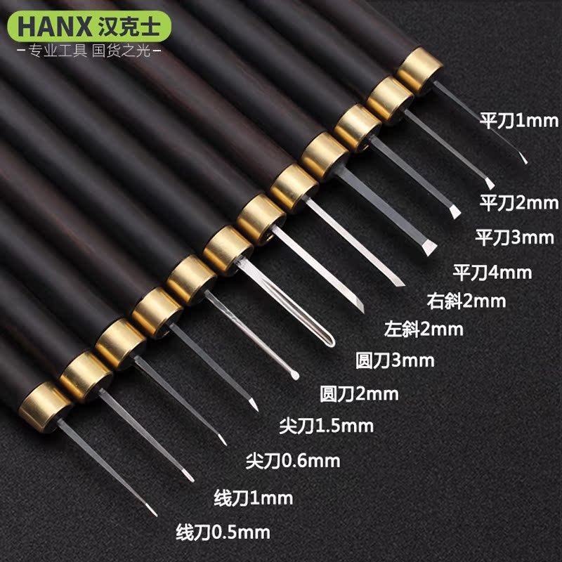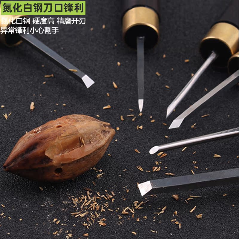 Handmade olive core carving knife 12 sets white steel wood carving knife micro-engraving sharp knife peach core basket carving tool