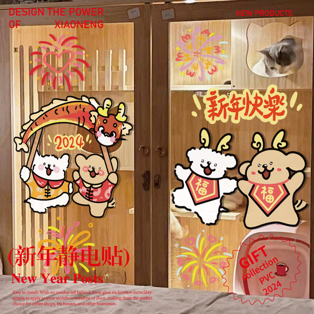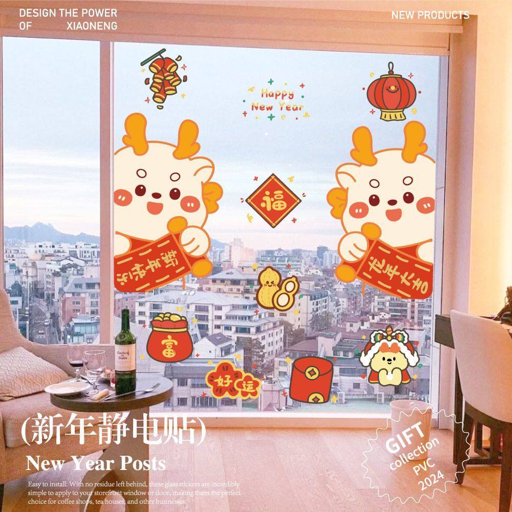 Dance Dragon Shuangfu 1 pair of 2024 Dancing Dragon Double Fufu New Year Happy Scroll-Daji New Year 1 for Fufu Icon Long Year's Eve Firecrackers 1 Pair Dancing Lion New Year Happy Lantern Colorful and Loving Smoke