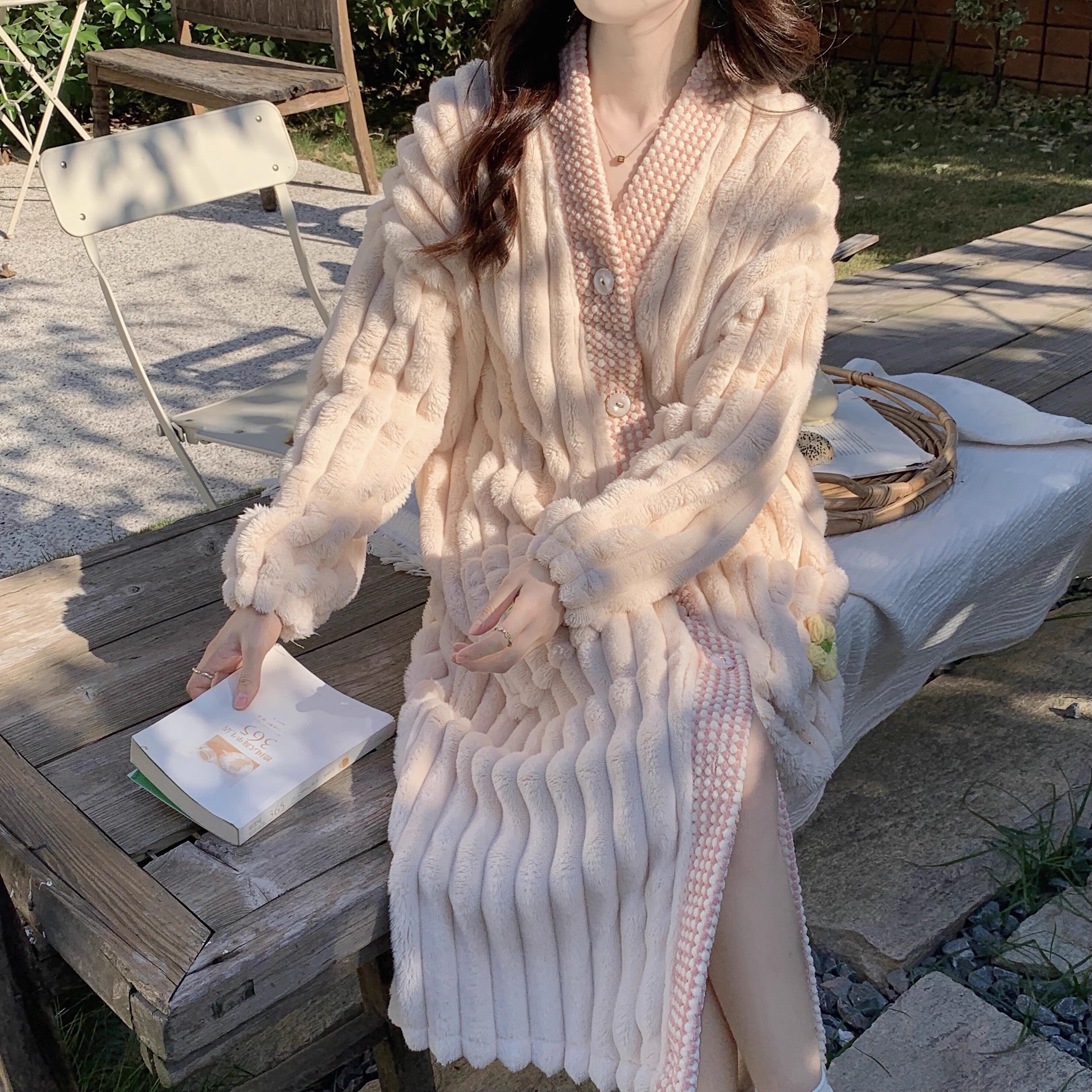 Coral Suede Sleeping Robes Lady Autumn Winter Long style Thickened Plus Suede Sweet and Cute Flannel Bathrobe Winter Pyjamas home clothes-Taobao