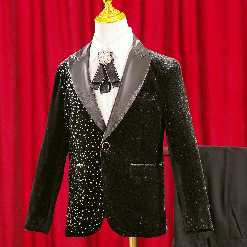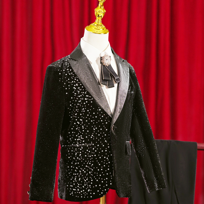Children's dress suit small host flower child suit 2023 new boy piano playing show velvet winter