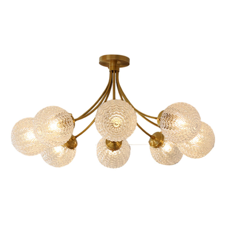 American light luxury bedroom retro ceiling lamp modern French living room dining room study glass dome cover all copper lamps