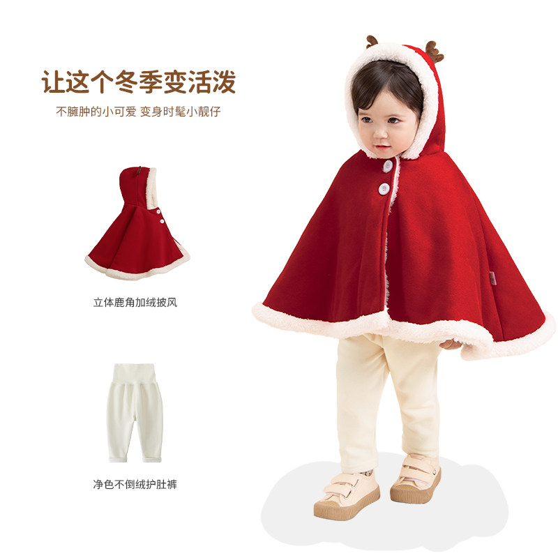 Zizi Bear Baby Cloak Winter Plus Suede Newborn Windproof shawl winter clothing Christmas style Christmas with baby Beatty New Year dress-Taobao