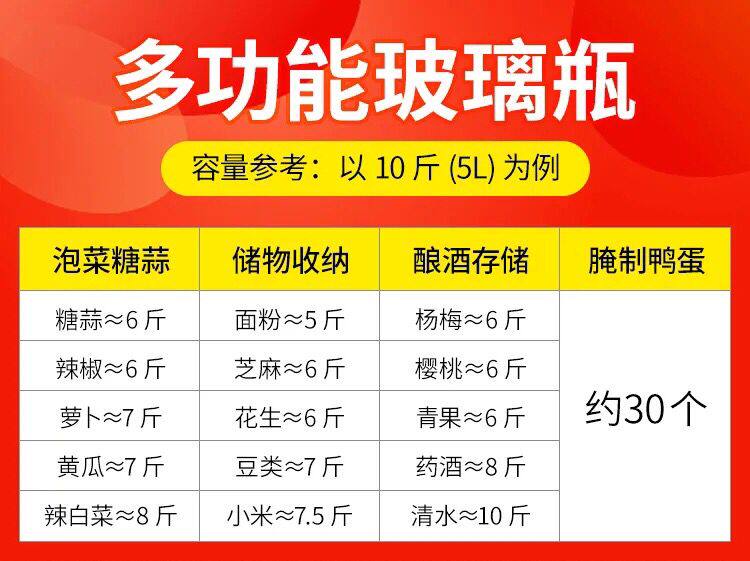 20 catties of kimchi, 5 catties of bayberry wine, pickled in glass bottles, 50 catties of pickles, 20 catties of fermentation tanks, 10 l of sealed tanks, dedicated