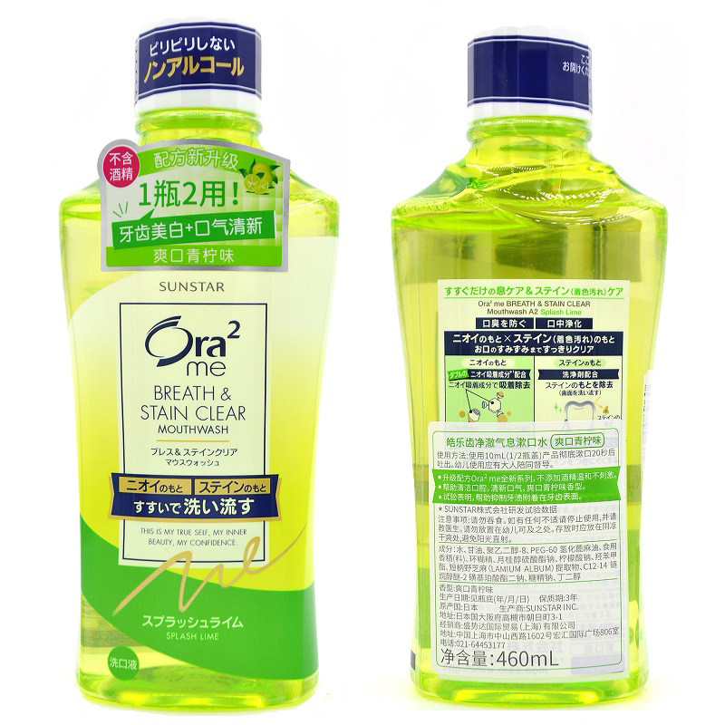 Japan imports ora2 Hole teeth mouthwash 460ml Shuang Mouth Green Lemon No Alcohol Pregnant Woman Bacteriostatic Breath