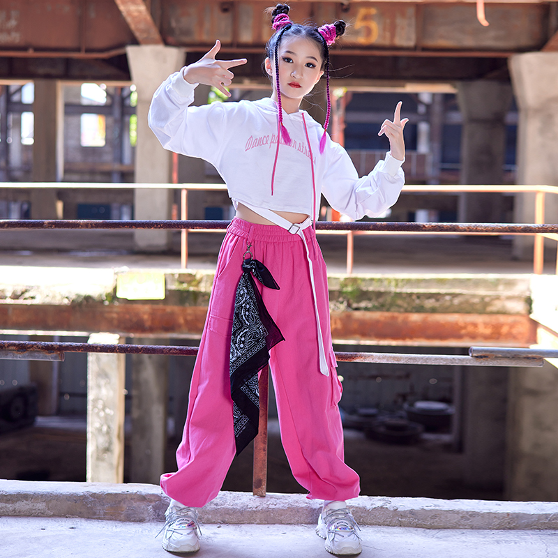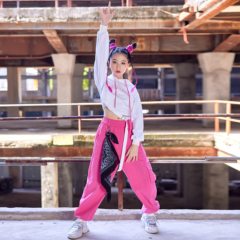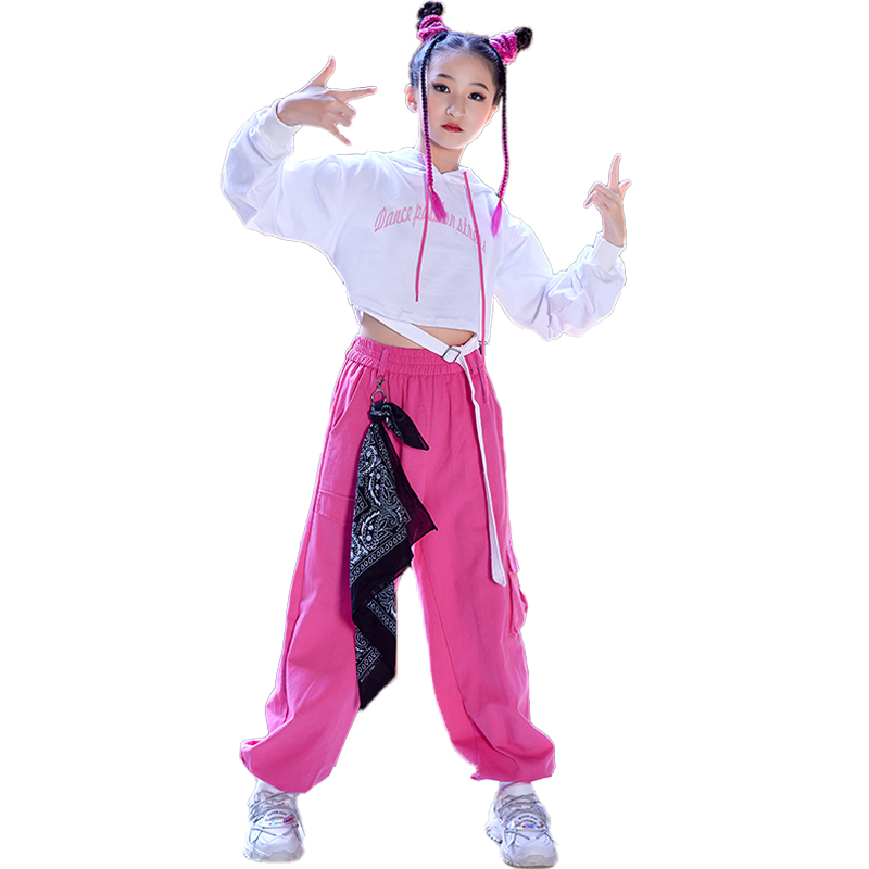 Girls jazz dance costume catwalk costume rose red trousers white crop top jazz children's street dance suit