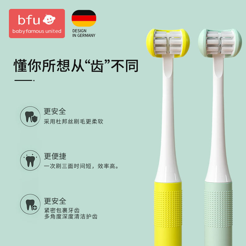 Suning children on three sides toothbrush soft hair 3 to 6 1-12 years old baby child 3d milk toothbrush 2368-Taobao
