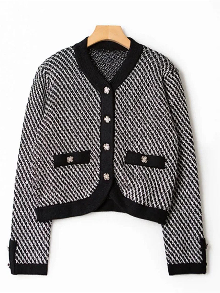 New Little Fragment Sweater Classic Circular Short Collar Short Four Black Button Commuter Living Little Living Little