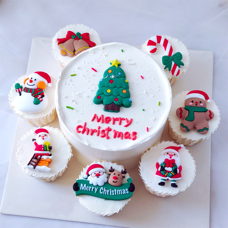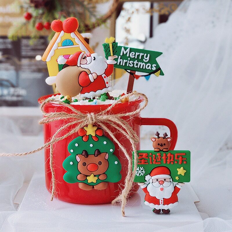 Christmas Red Hat 1 Christmas red scarves 1 green card English Christmas Happy Christmas tree Small bear swing piece 1 Santa Claus green card 1 Santa back Shadow green bag 1 Christmas green leaves red fruits swing piece 1 Saint