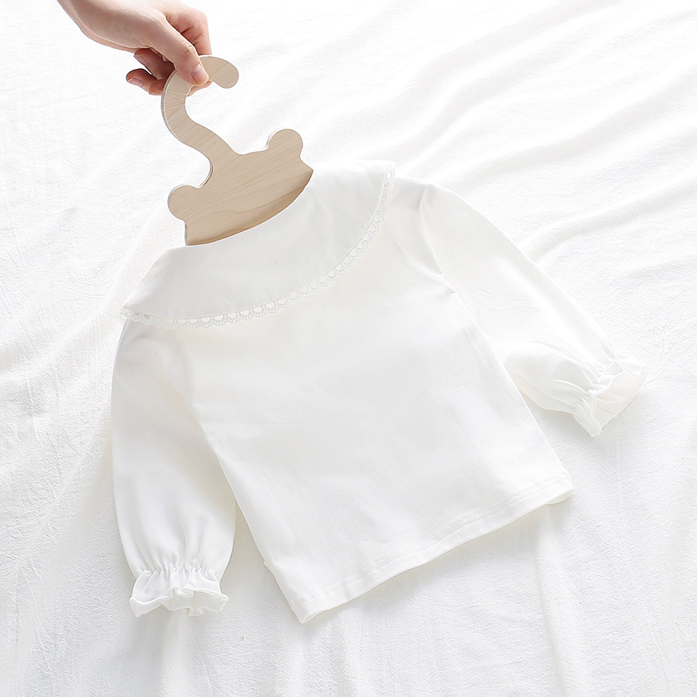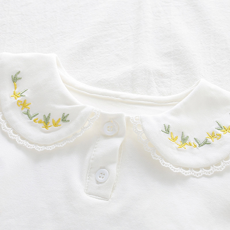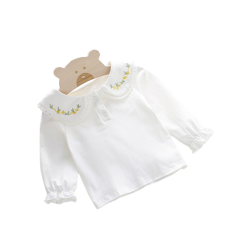 Baby spring and autumn bottoming shirt 0-3 years old baby girl long-sleeved white T-shirt girl doll collar embroidered top foreign style
