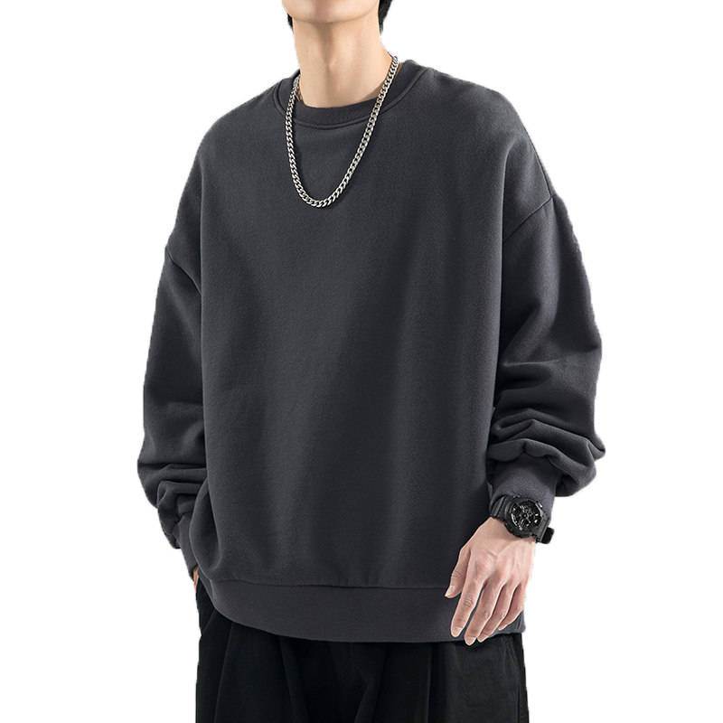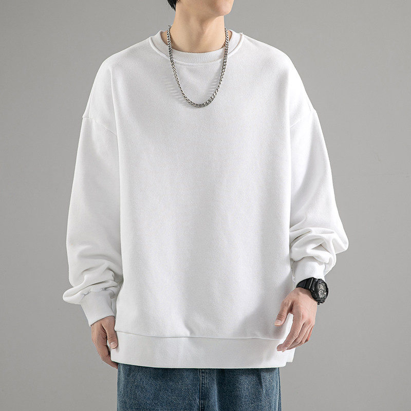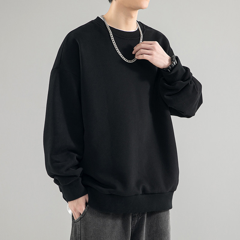 480g Heavy-pound spring autumn necropolis for men's 2023 new fall black round collar American Chauded with undershirt blouses-Taobao