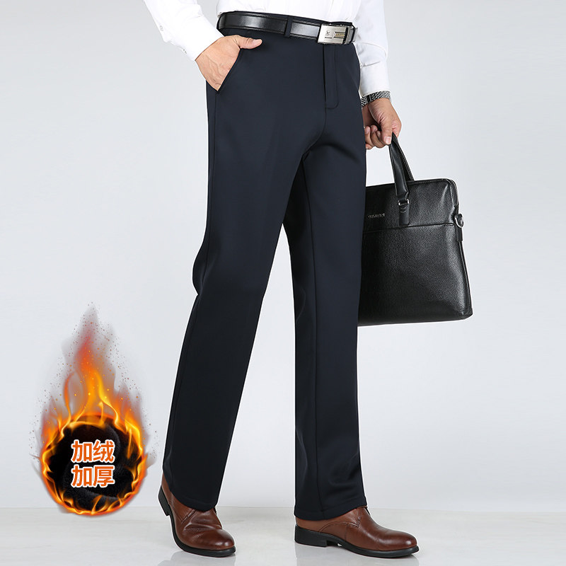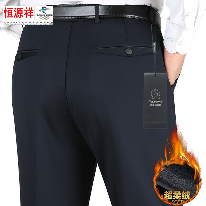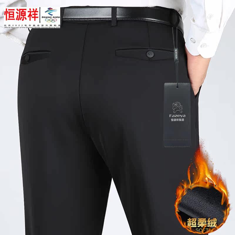 Hengyuanxiang Group color sheep plus velvet thick casual pants men's middle-aged and elderly high waist deep file loose dad warm men's pants