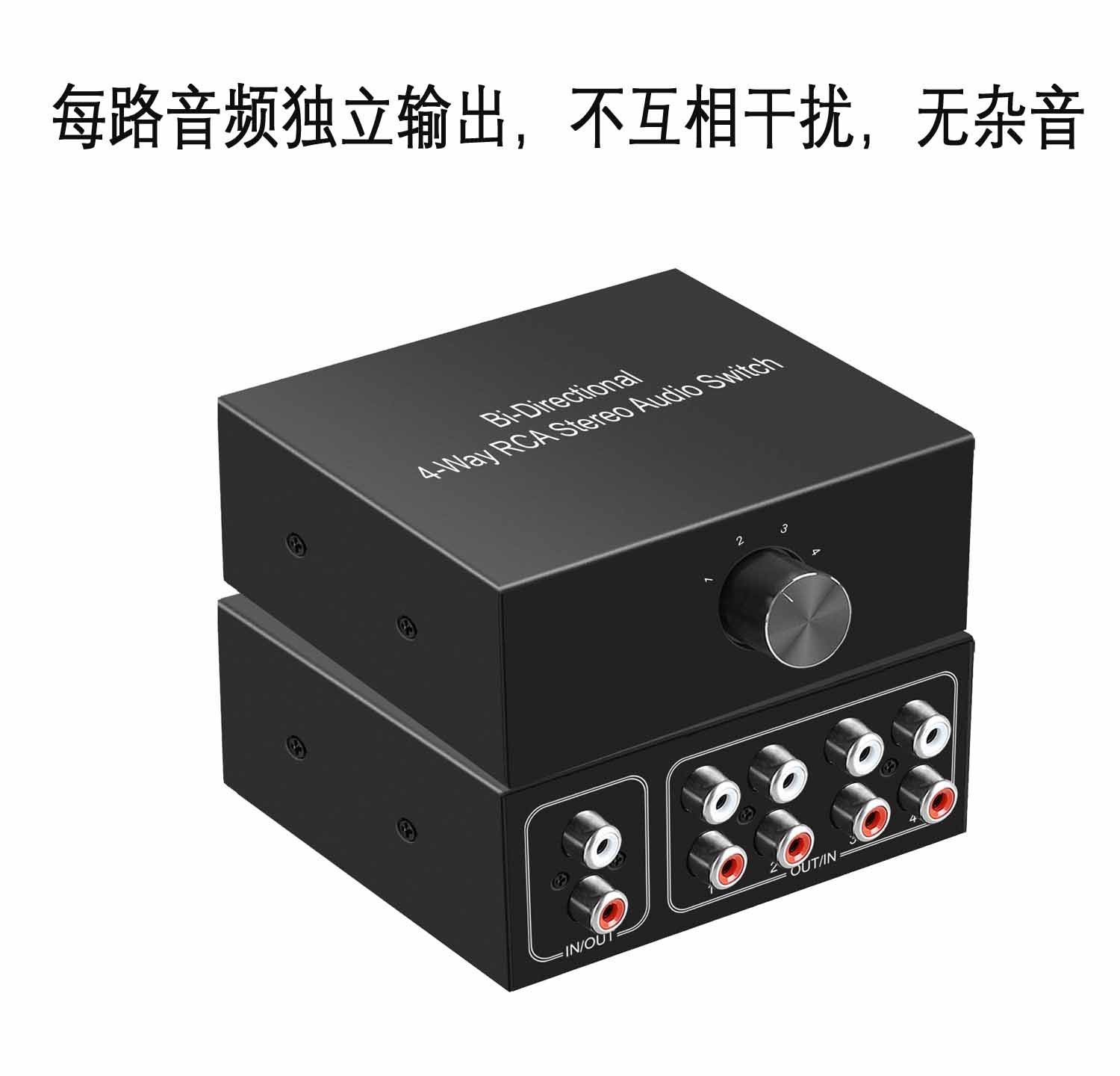 Audio switcher red and white 4 in 1 out RL computer headset hifi level RCA interface anti-current sound converter