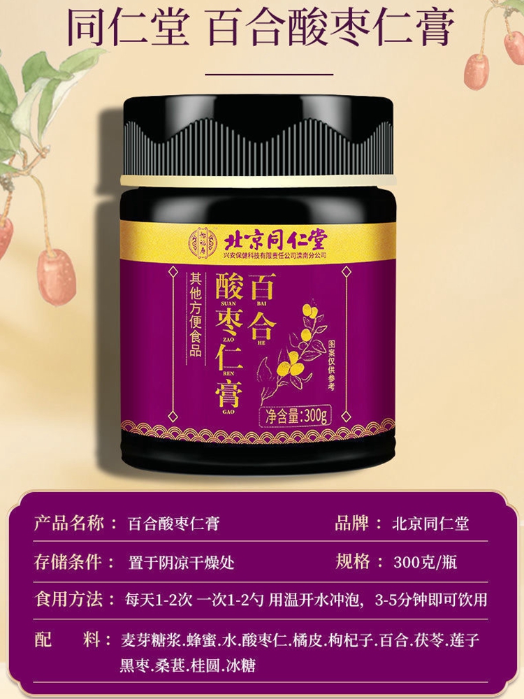 Beijing Tongrentang Suanzaoren Paste Lily Poria Tea Sleeping Tea Soothe the Mind and Help Sleep Severe Insomnia