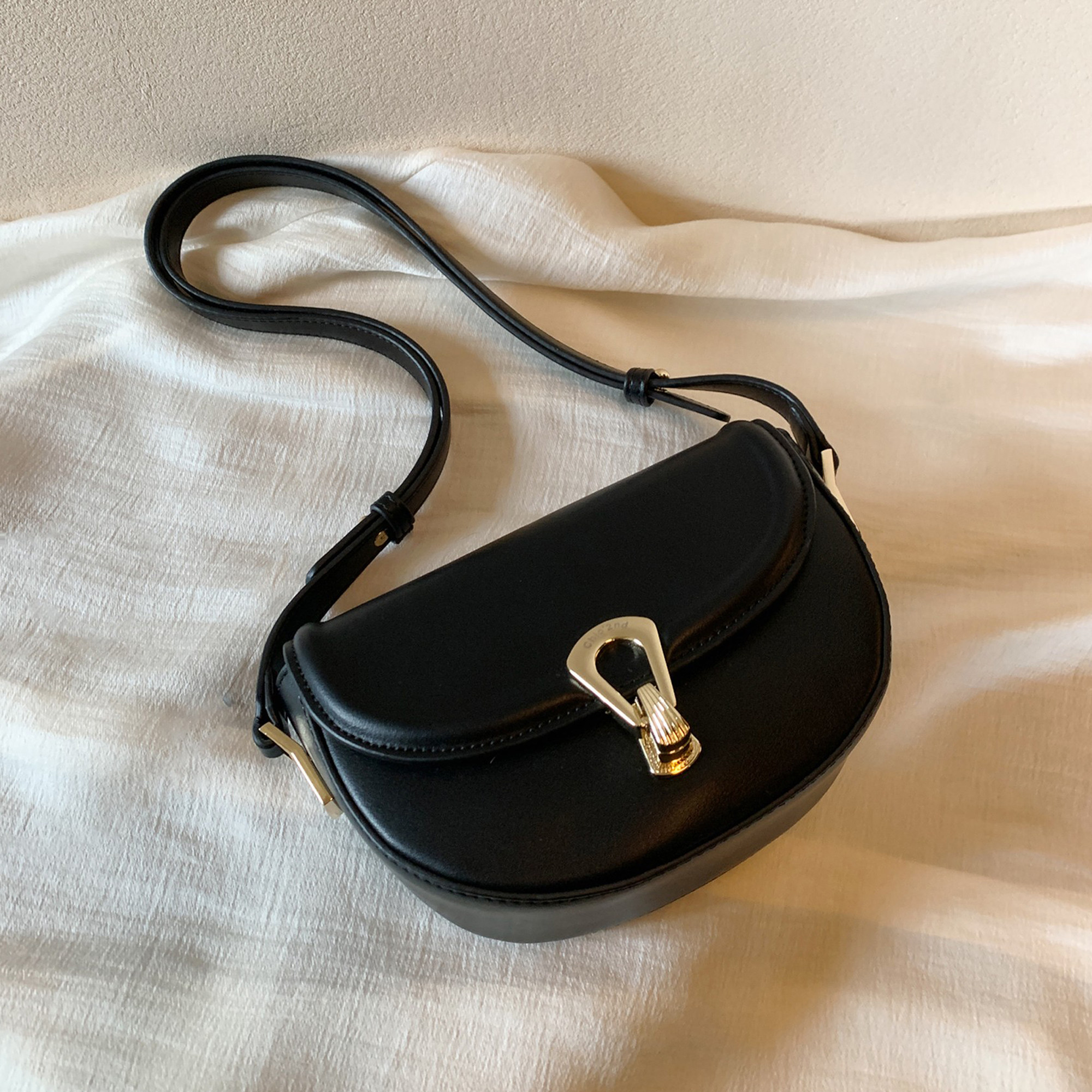 South Wind Chio2nd Black Gold Shell Saddle Bag girl 2023 with high texture niche shoulder slope bag