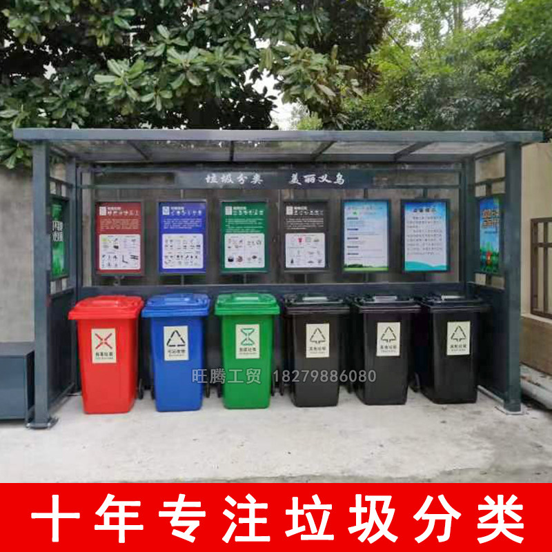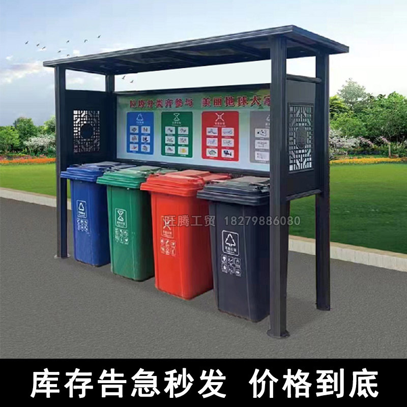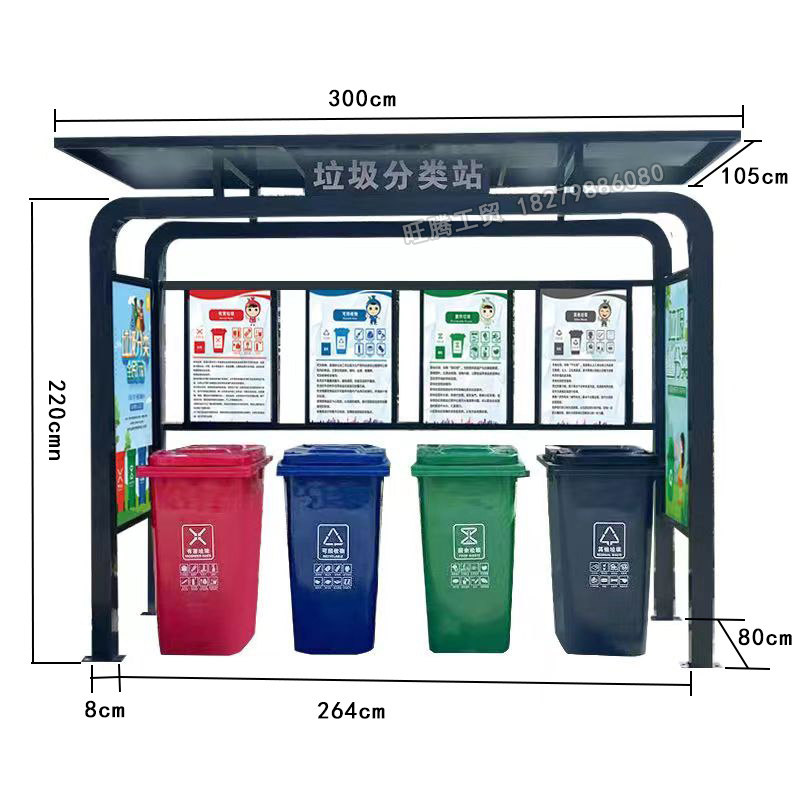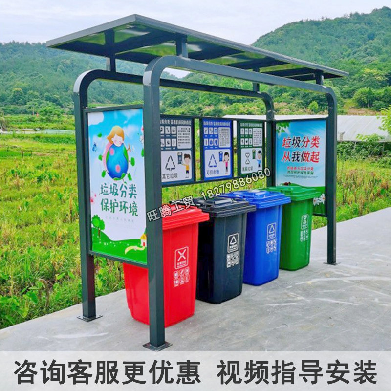 Custom outdoor garbage sorting kiosk collection kiosk community stainless steel antique garbage room rainproof recycling shed billboard