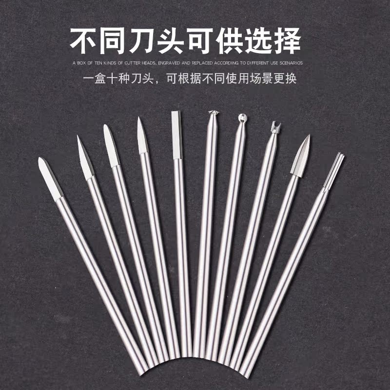 Electric nuclear carving knife set woodworking milling cutter dental machine sword knife sharp blade head olive nuclear carving repair light micro-carving tool