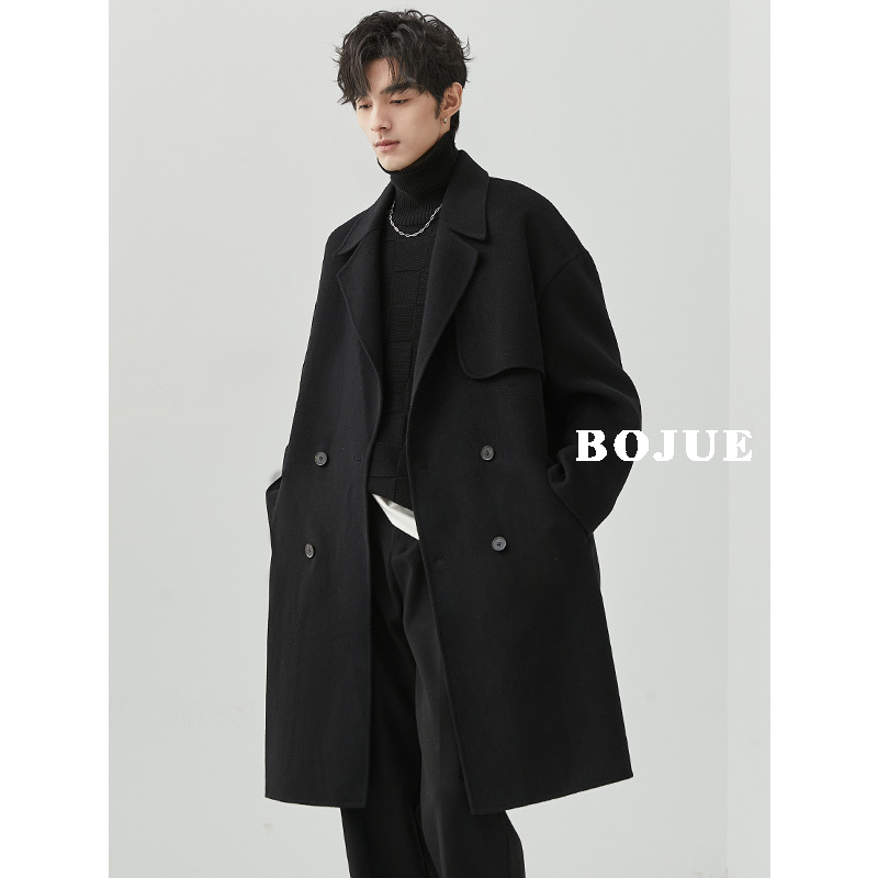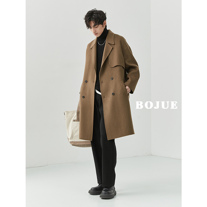 Cashmere wool double-sided woolen coat men's JIN mouth Earl Drow double-breasted mid-length autumn and winter woolen coat