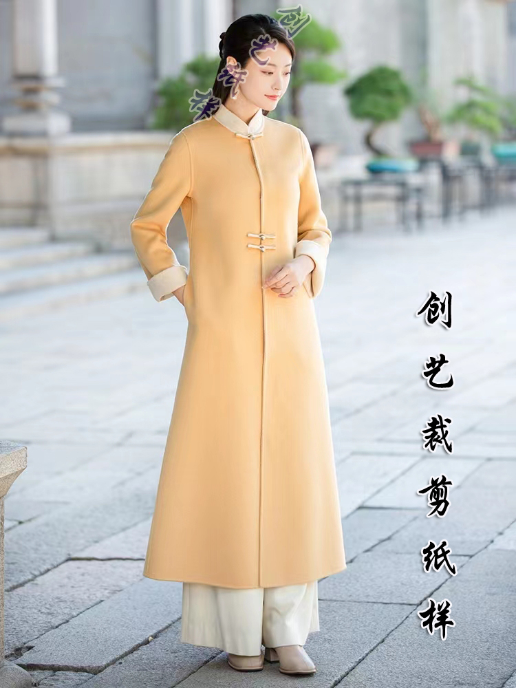 Pattern N91 autumn and winter improved Chinese women's pair thickened double-sided cashmere coat jacket 1:1 pattern paper cutting drawing