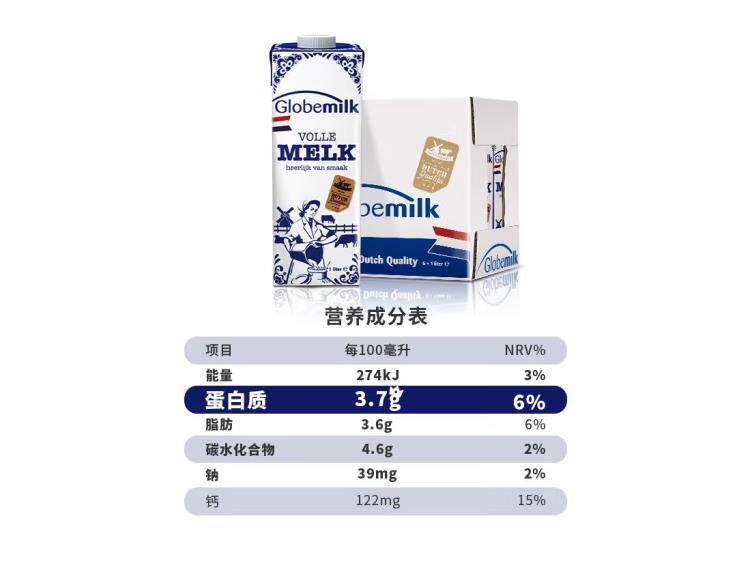 Dutch original imported full fat pure milk 3 7 Youmilk protein 1L* 6 whole boxed-Taobao