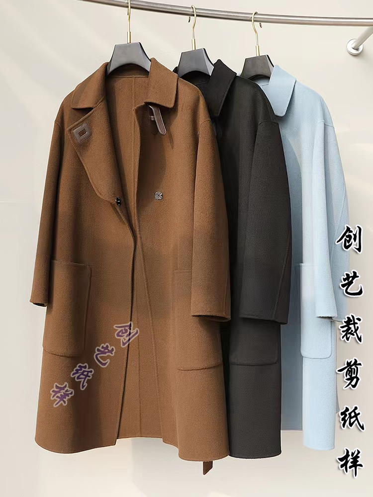 Pattern version N90 new autumn and winter double-sided cashmere coat women's mid-length jacket drop-shoulder sleeves 1:1 real sample cutting