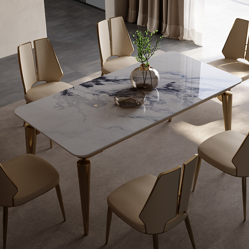 Willy-style minimalist table 2021 new high-end designer light extravagant furniture rectangular rock plate dining table and chairs combined-Taobao