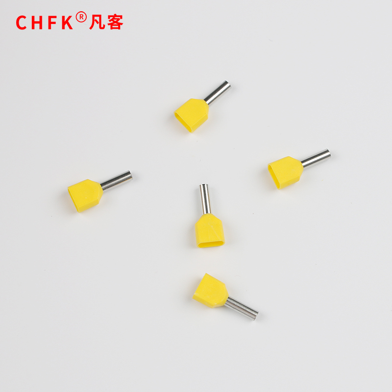 Double-wire tube type pre-insulated terminal TE2510 cold-pressed terminal needle-shaped small black clip two-wire and head red copper 1000