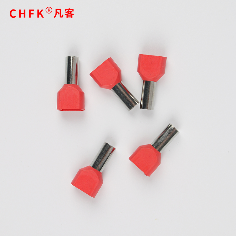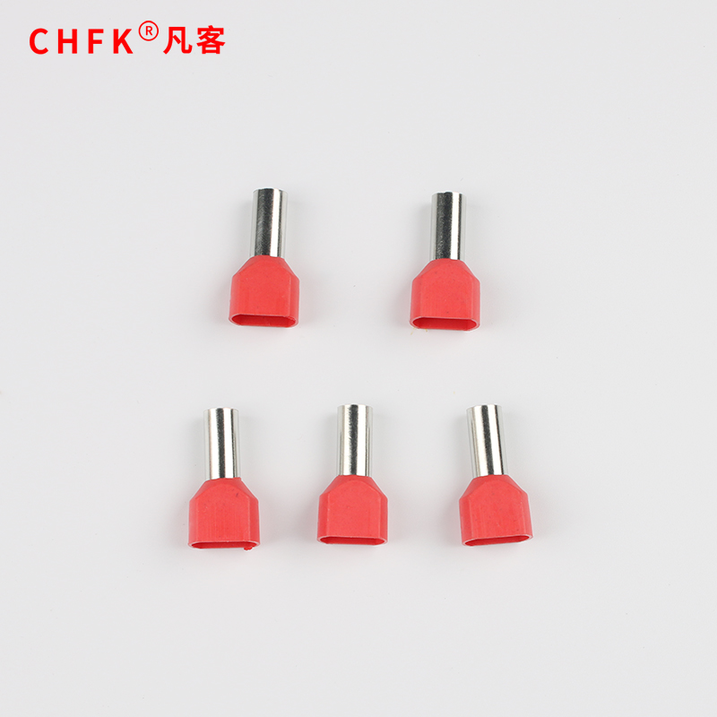 Two-wire tube type pre-insulated terminal TE10-14 cold-pressed terminal needle-shaped small black clip two-wire and head red copper 500
