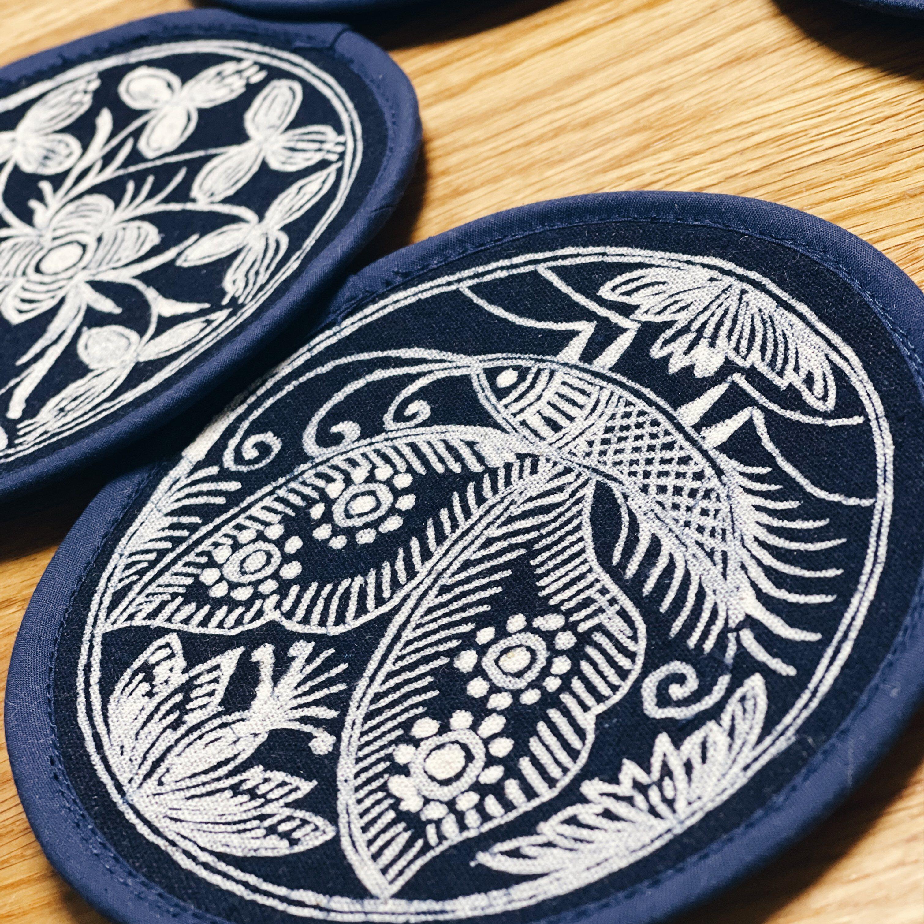 Traditional Chinese round quilted coaster Guizhou handicraft retro batik plant dyed insulation cloth pad anti-scald
