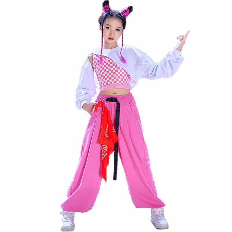 Girl Jazz Dance Costume White Costume Broad Legs Showsuit Hiphop Street Dance Children's Tide Cool