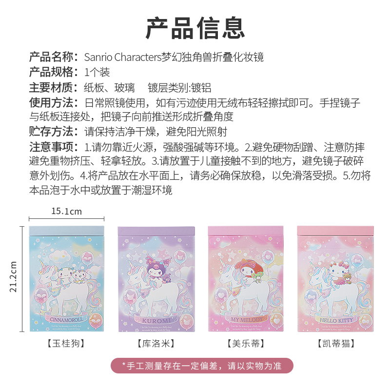 Sanrio Characters Fantasy Unicorn Folding Vanity Mirror