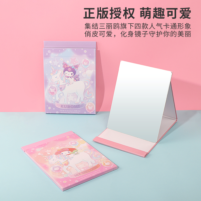 miniso famous product Sanrio Kuromi Yugui dog folding makeup mirror dream unicorn cute table mirror