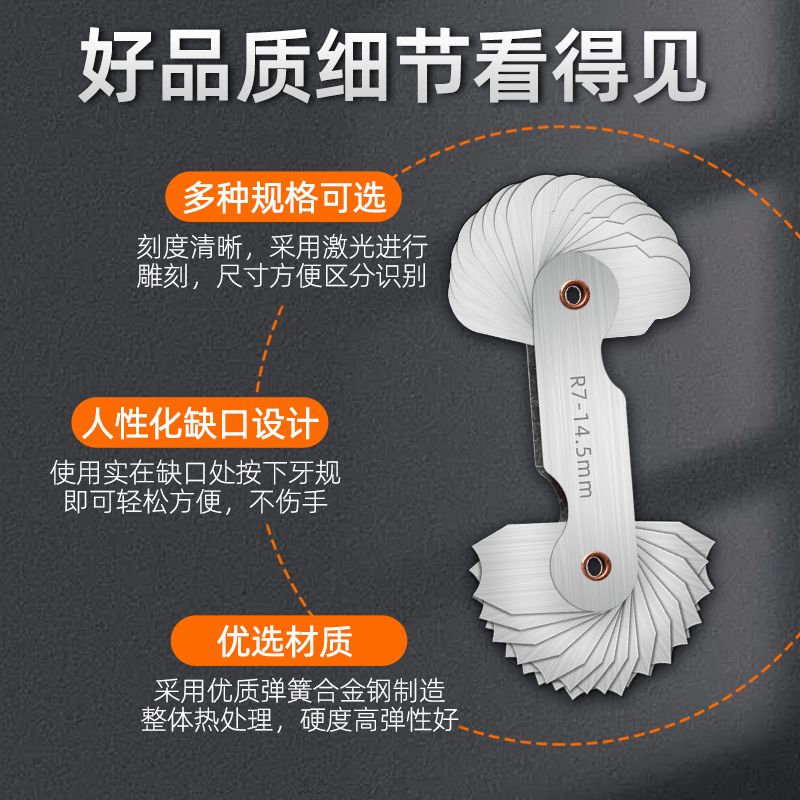 Stainless steel R-plate Radio Specific Range Round Arc Rule Measurement Tool for R-angle Range
