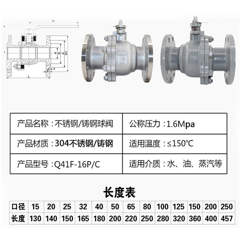 Shanghai Hugong valve cast steel ball valve stainless steel flange high temperature and high pressure Q41F-16C hard seal DN100150