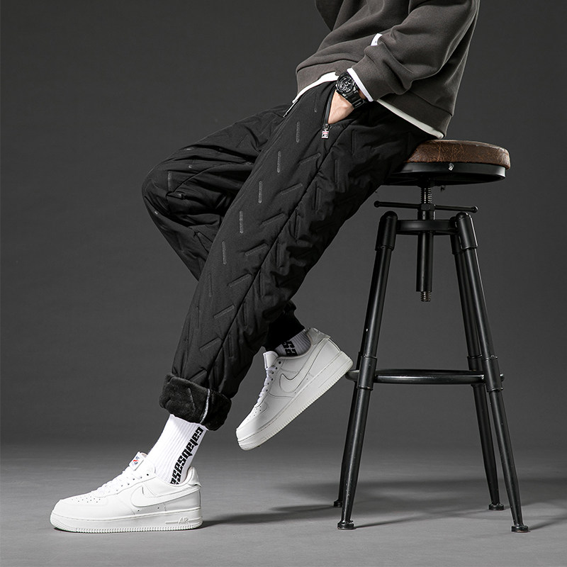 Thickened Pants Male loose Gats up overweight Northeast Warm Pants Winter Cold Store Middle Aged Down Cotton Pants Outwear-Taobao