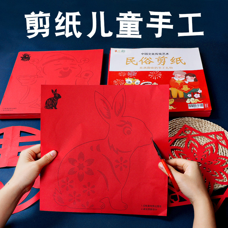 2024 New Year cut paper pattern underdraft Children's handmade Diy Kindergarten New Year's Day China Wind Window Flower semi-finished products Long-Taobao