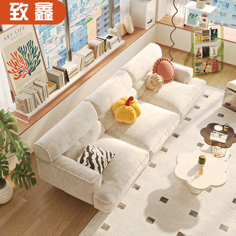 Zhixin cream style lamb velvet net red fabric sofa modern minimalist living room small apartment tofu block sofa