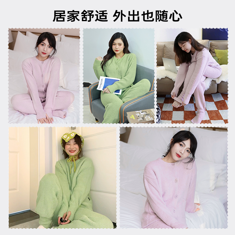 Half practice half velvet pajamas women can wear outside winter home service coral fleece thickened plus velvet warm home suit