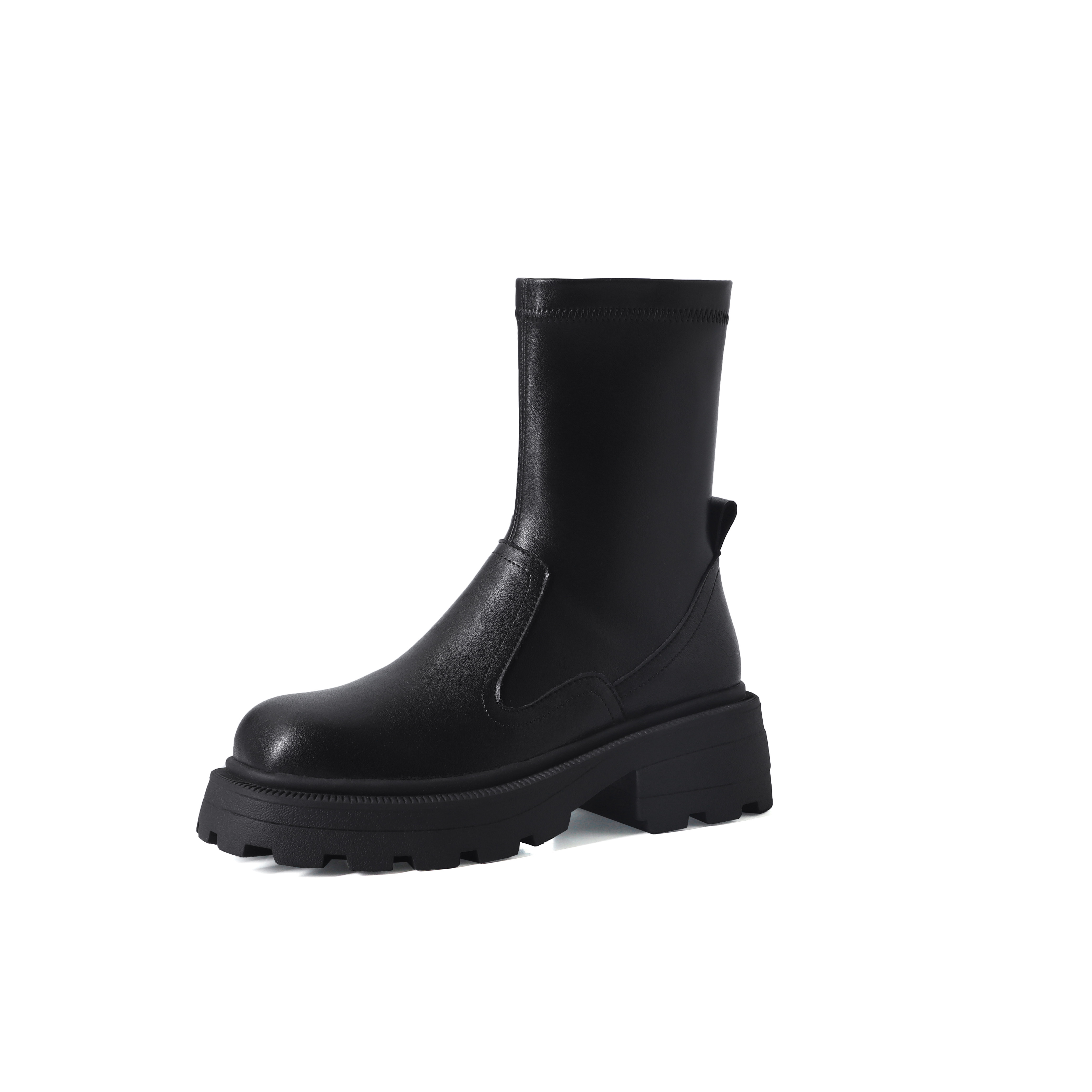 Lingo studio college style thick-soled short boots women's 2022 autumn and winter new leather square head slim Martin boots trend