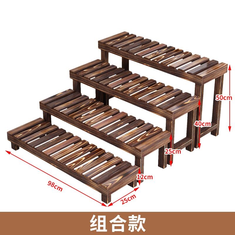 Outdoor anti-corrosion solid wood multi-layer floor-to-ceiling flower shelf indoor and outdoor balcony succulent green dill rack stepped shelf
