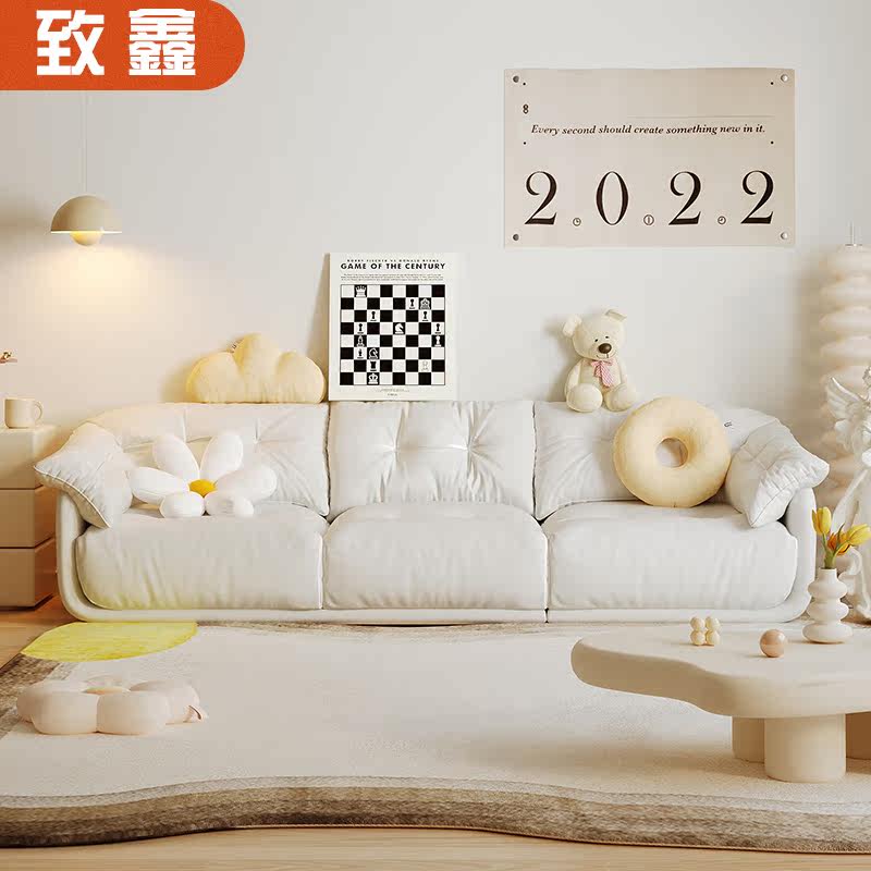 Nordic fabric sofa modern minimalist small apartment living room super soft net red straight row down down tofu block sofa