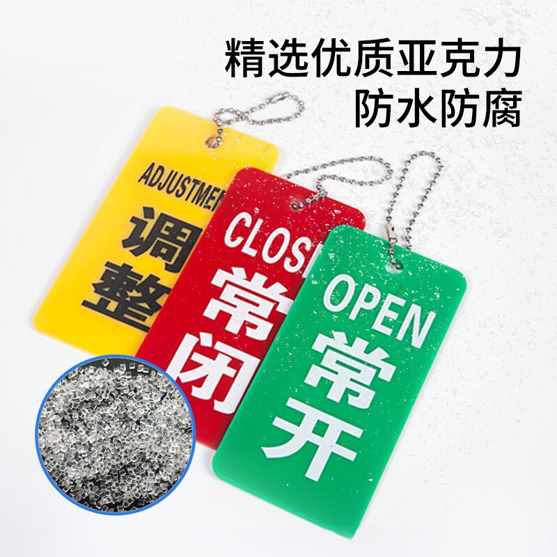 Acrylic sign equipment status card double-sided valve tag with chain normally open normally closed switch sign