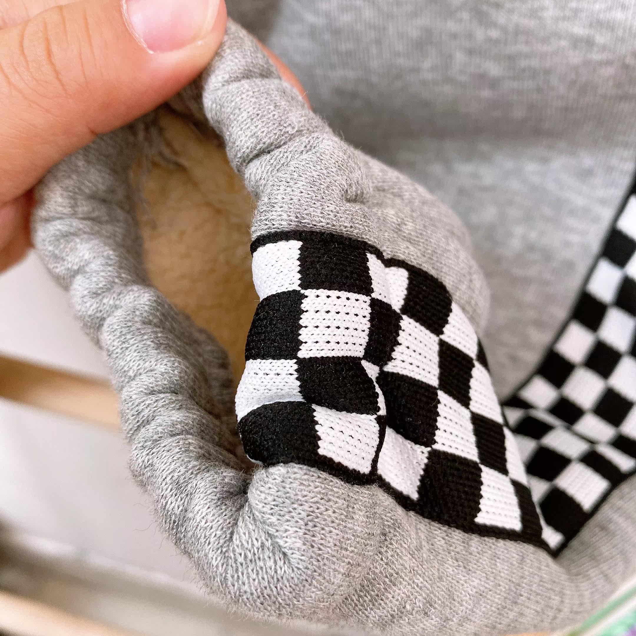 Brand winter children's big children adult parent-child Korean version of foreign style checkerboard plus velvet warm knitted pants 5268