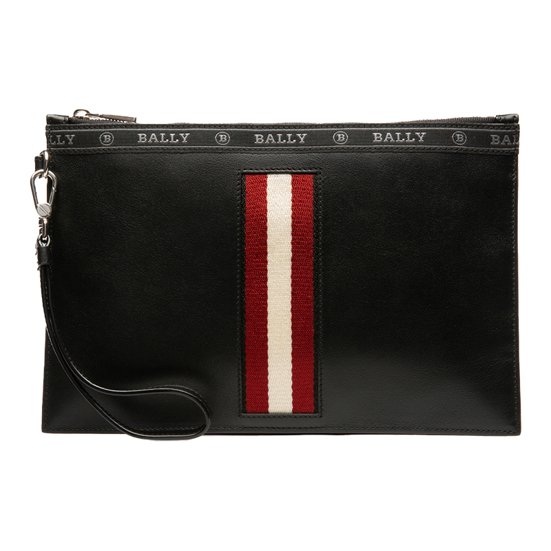 (self-employed) Bally Balli men's red and white striped black cow leather handbag with bag business light lavish gift-Taobao