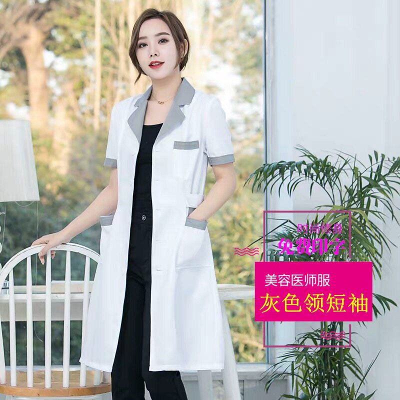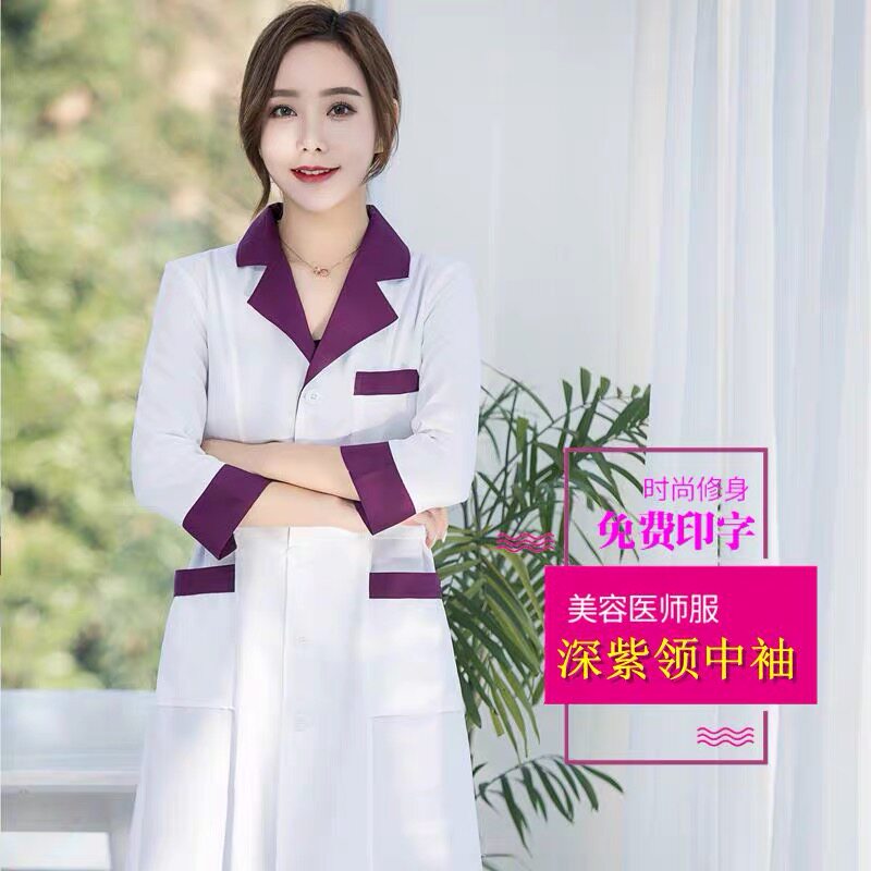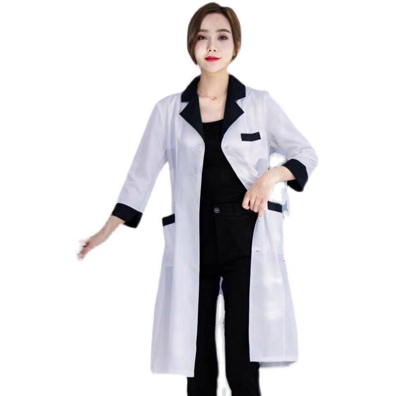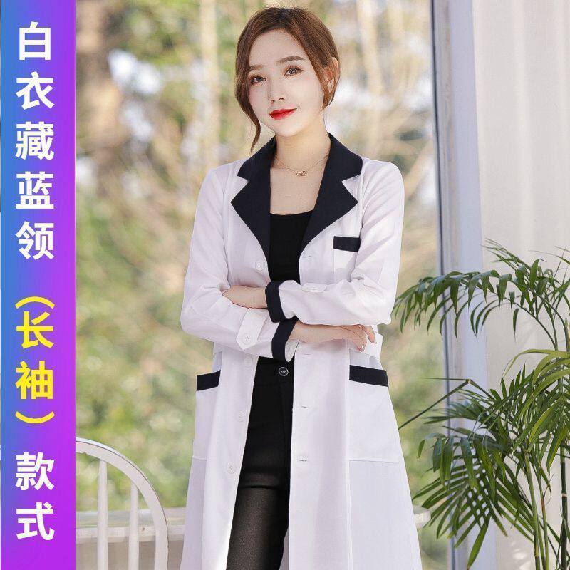 High-end beauty salon beautician work clothes autumn winter style long sleeve drugstore white large coat with short sleeve tattoo embroidered beauty suit