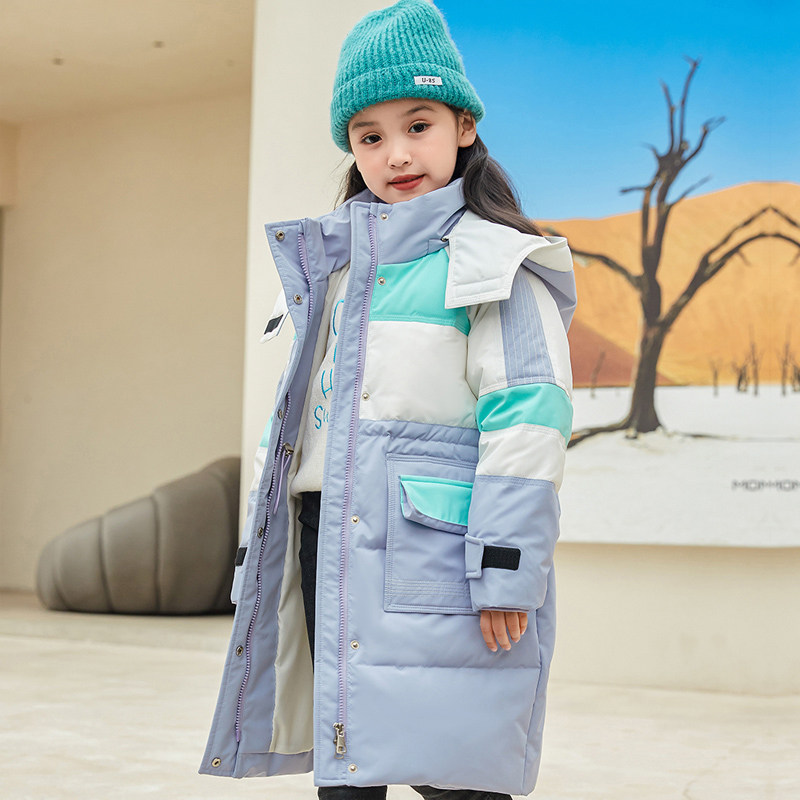 Bala children's down jacket girls 2022 new boys' winter thickened middle-aged children's long version over-the-knee Western style jacket