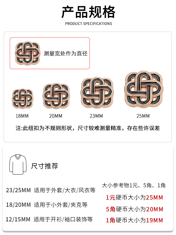 Metal retro-wind button square hollow tops sweater sweater high feet sewing accessories