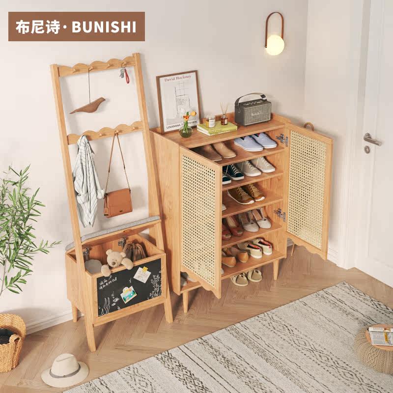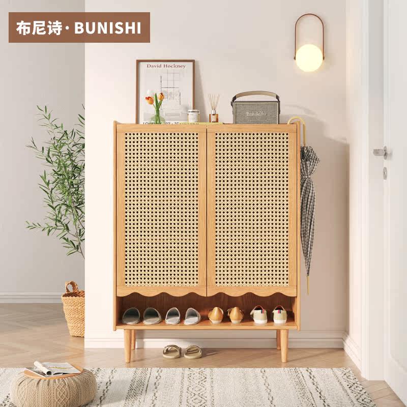 Bounishi log wind shoe cabinet modern minimalist small apartment rattan storage locker porch cabinet