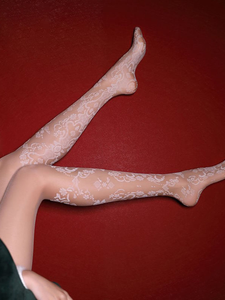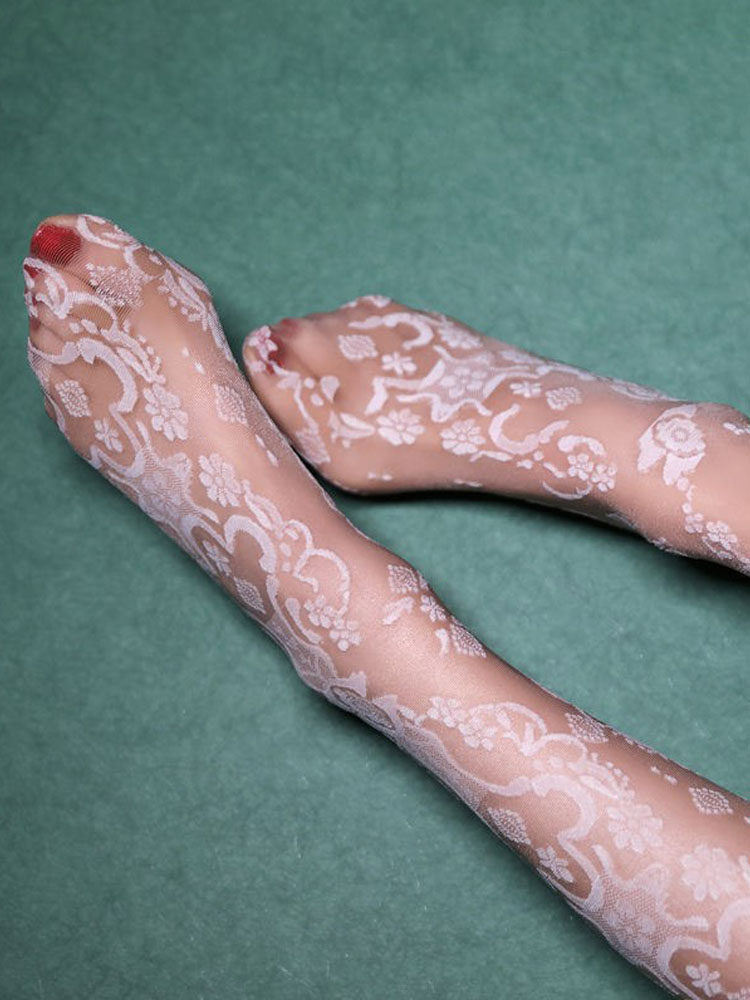 Silk Socks Spring Autumn Style Retro Elegant Floral Summer Socks White Lace Socks Sexy Light Leg God Instrumental Fashion pantyhose