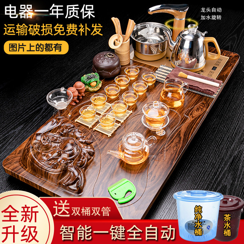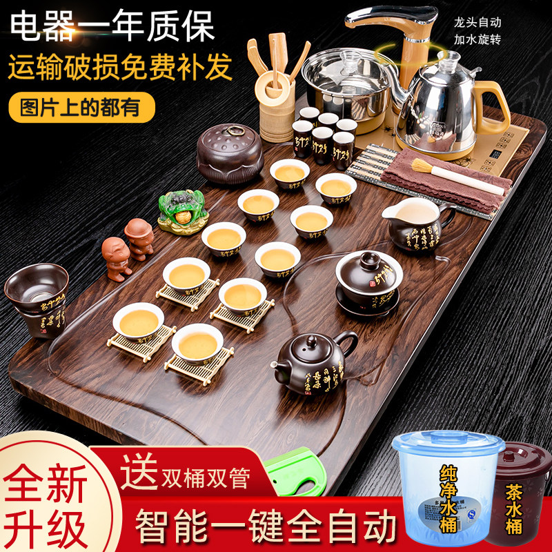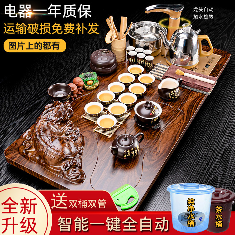 Tea set suit Home automatic whole set tea Purple Sand Kung Fu Ceramic Minimun integrated tea table Road solid wood tea tray-Taobao
