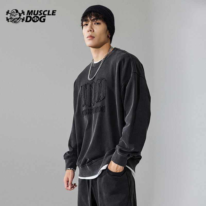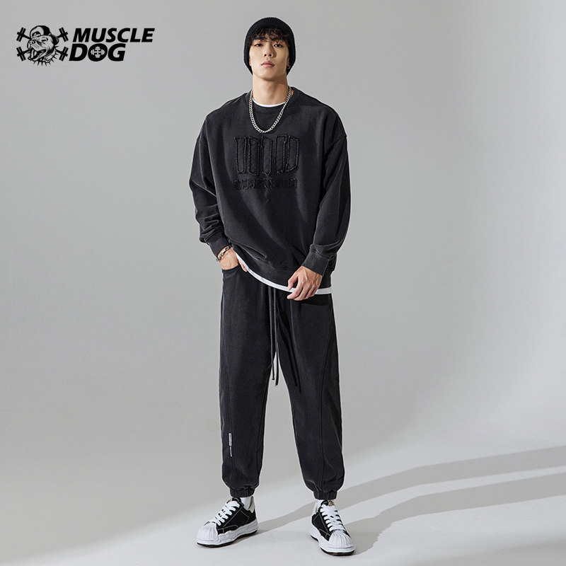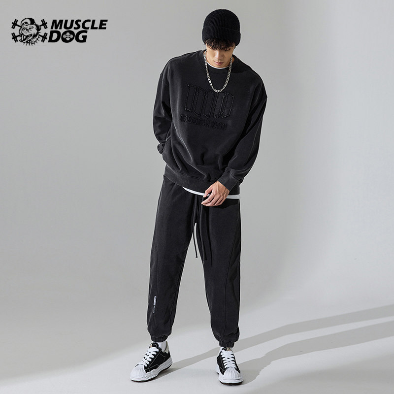 Muscle dog autumn and winter tide wash water for old long sleeve headshirt loose sports and leisure fitness circle suit male